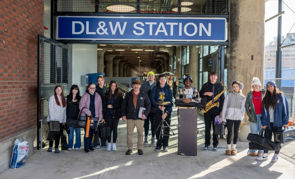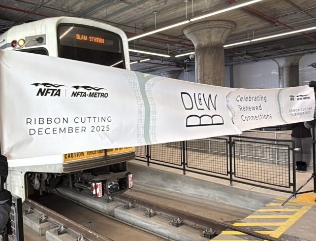 The NFTA held a ribbon-cutting ceremony on Monday, December 8, to officially open the DL&W Metro station to the public. This event marks a significant milestone in enhancing access to Buffalo's growing waterfront and revitalizing one of the region's most historic transit landmarks. The highly anticipated station opening is the result of the financial support from Governor Kathy Hochul, Congressman Tim Kennedy, and the entire Western New York Delegation. The celebration included a speaker presentation, a performance by the Kenmore East High School band, a visit from Sabretooth, and the distribution of a special commemorative coin.