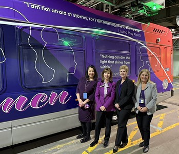 The bus, developed in collaboration with the Western New York Women's Foundation, was unveiled at a ceremony at Metro's Cold Spring Garage. Designed by Caitlin Klein, our senior graphic designer, the bus commemorates Women's History Month and honors the leadership, resilience, and influence of women throughout the region.