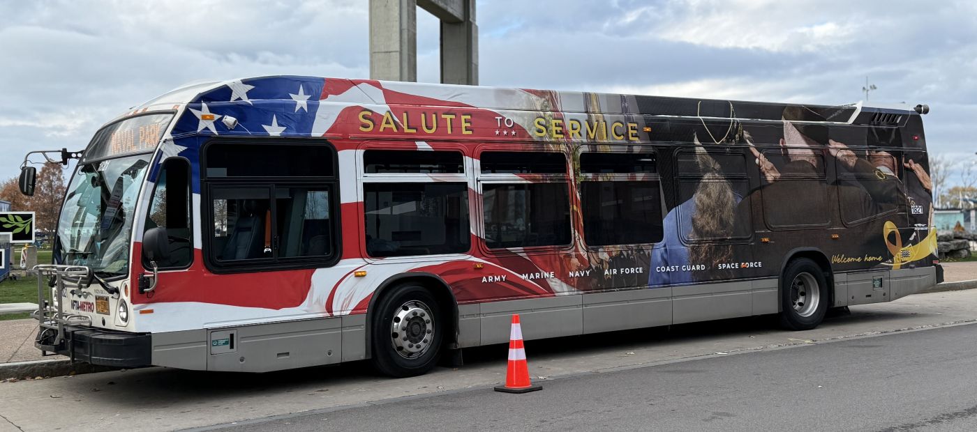 This memorable event, held at the iconic Buffalo Naval Park, featured a variety of races including the 5K, 10K, and a kids' "Cadet" race. Alongside our NFTA veterans, employees, and their family members, we were excited to highlight our new NFTA Veterans Bus. The bus made a special appearance at the race, serving as a symbol of support while showcasing its striking design and meaningful artwork. The exterior features graphics honoring veterans, with patriotic colors and imagery that reflects the spirit of service and sacrifice.