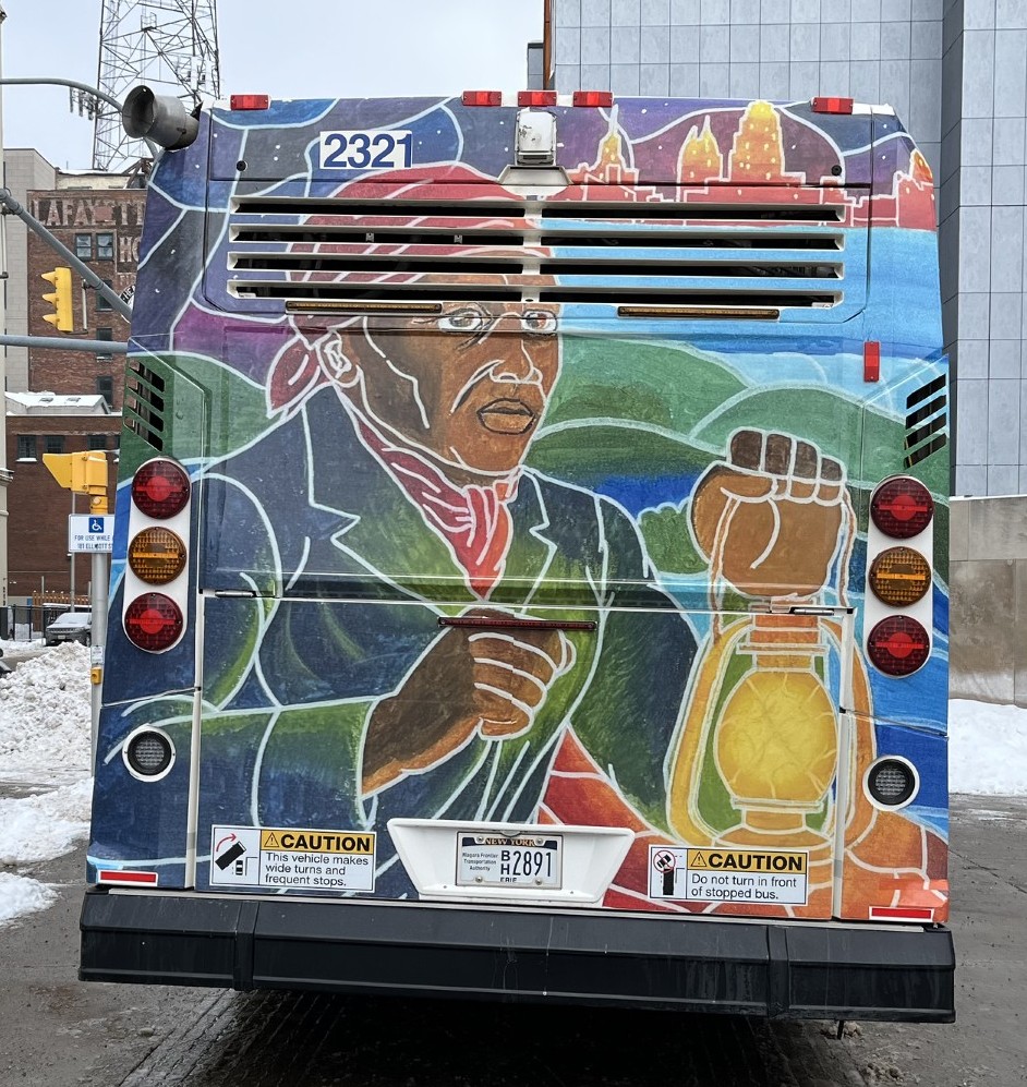 Today, the NFTA proudly unveiled the winning artwork for its annual Black History Month Bus. The selected piece, Guided by Light, was created by artist Sharard Saddlers and honors the enduring legacy of Harriet Tubman and her courageous leadership in guiding enslaved people to freedom, including along routes through Western New York.