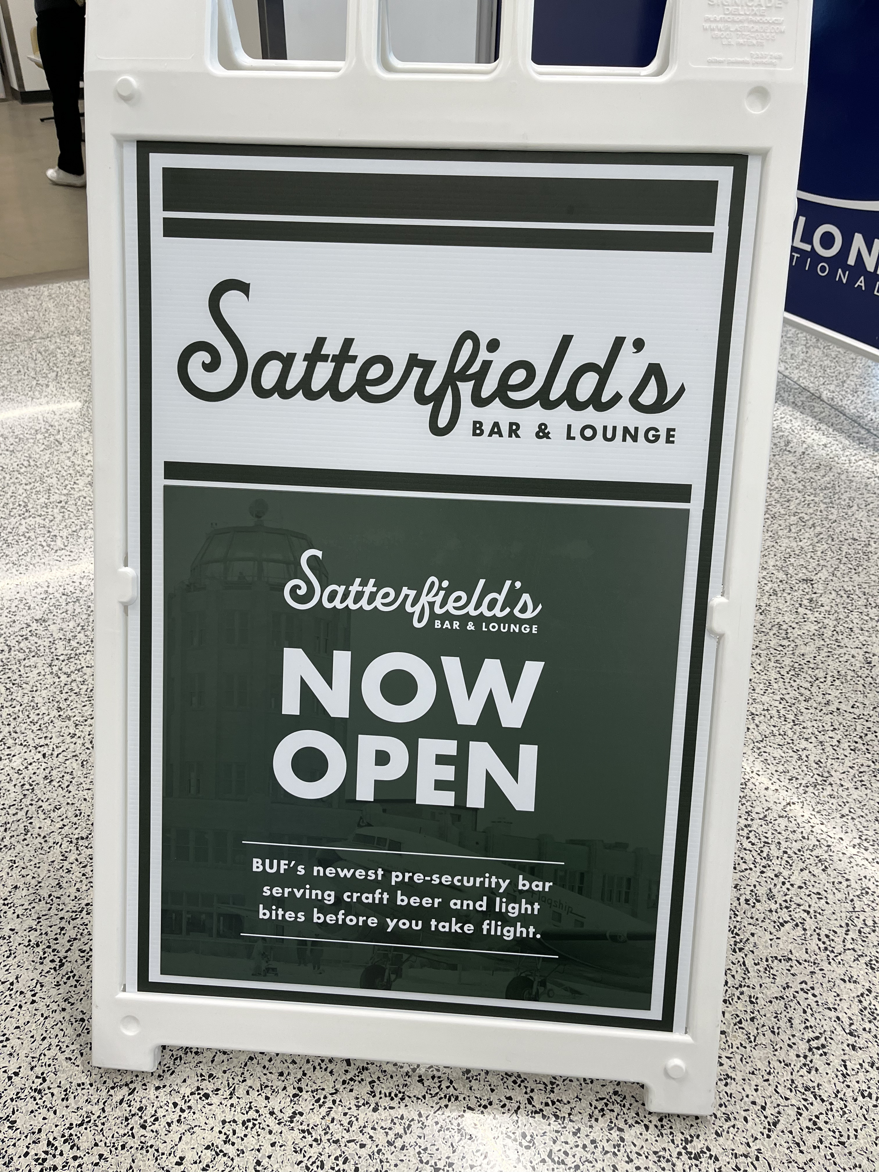Named Satterfield's Bar & Lounge, the venue honors the legacy of airport founder John M. Satterfield and celebrates Buffalo's rich aviation heritage. The 50-seat lounge features décor and wall graphics that pay tribute to the region's aviation history, creating a visual storytelling experience that connects guests to the airport's roots and evokes a sense of returning home. The lounge operates primarily from late morning through the evening, launching with a focused menu featuring flatbreads, salads, sandwiches, and small plates. A grab-and-go cooler will also be available.