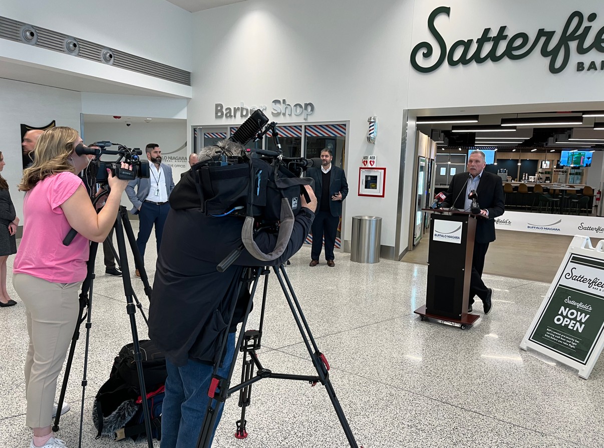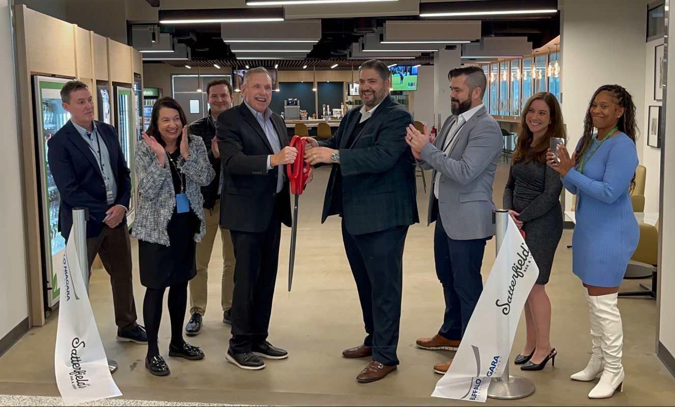 Representatives from the NFTA and Delaware North cut the ribbon today to officially open Satterfield's Restaurant, the new pre-security bar and lounge at the Buffalo Airport. The venue offers a warm and inviting space for meet-and-greeters ahead of the airport's centennial celebration in 2026.