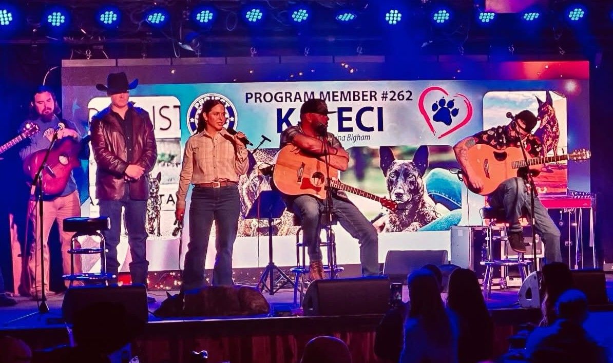 Remarkably, she is part of the 8% of dogs who survive longer than six months after a diagnosis of splenic hemangiosarcoma. Eci is truly a walking miracle. Because of her inspiring journey, she was recognized at the Project K-9 Hero's 5th Annual Performers for Paws event in Nashville back in January. Dina Bigham, Eci's former partner and owner, was fortunate enough to join her on stage with several artists to share her incredible story, including her battle with cancer and her struggle with IVDD, a degenerative spinal disease for which she receives physical therapy. The event raised over $500,000 for the nonprofit organization that provides care and support for hundreds of dogs like her.